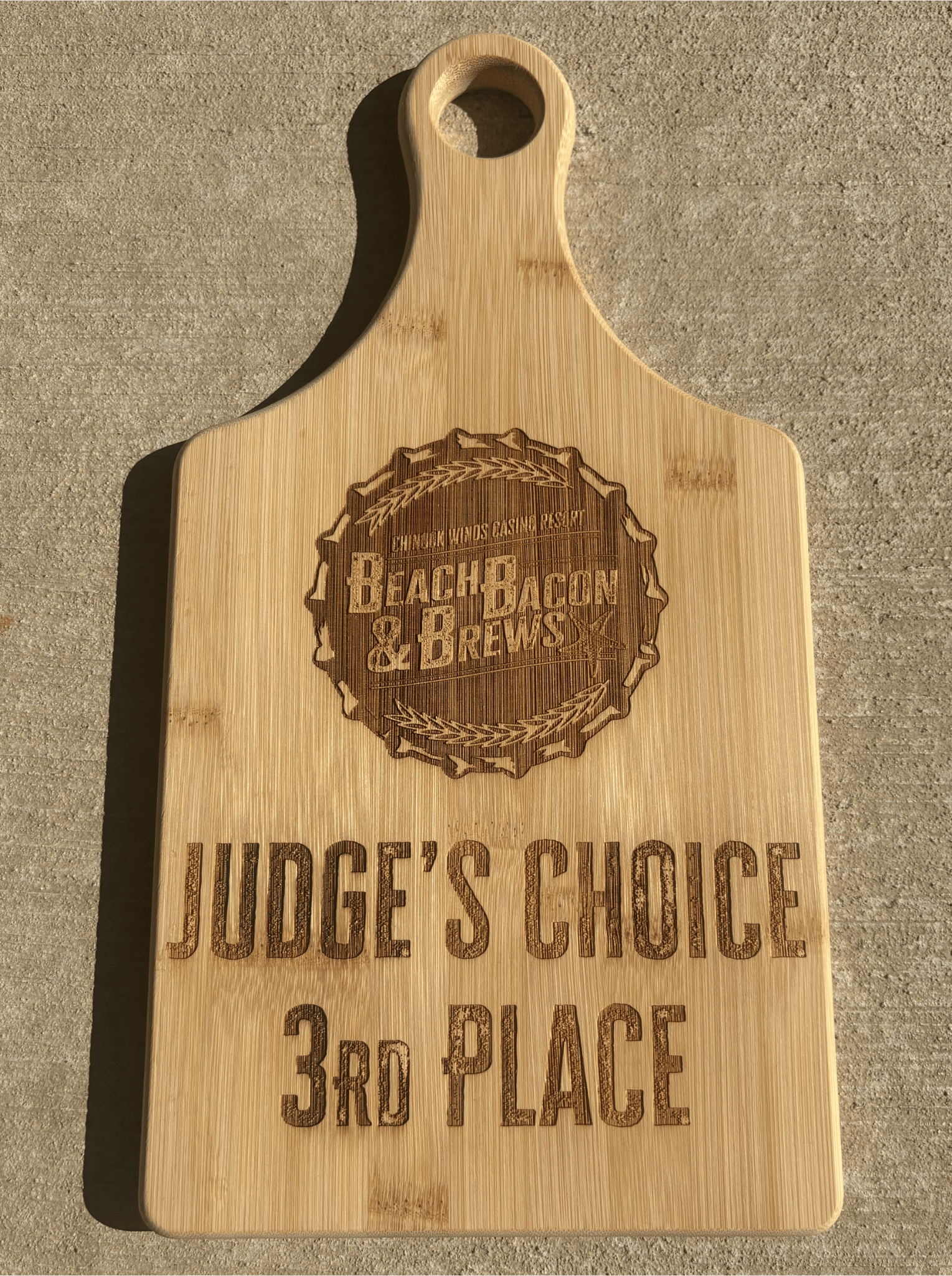 $575 Raised at this event and 3rd Place Judge’s Choice (cutting board)